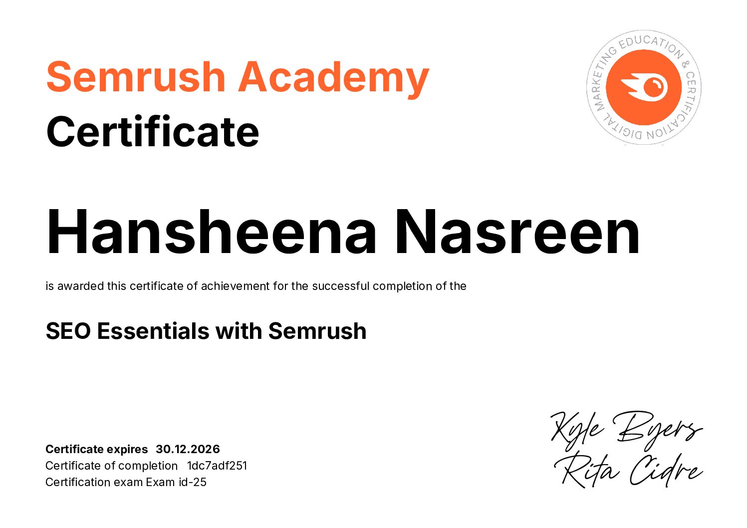 My Certifications as the Best Digital Marketing Strategist in Kasaragod